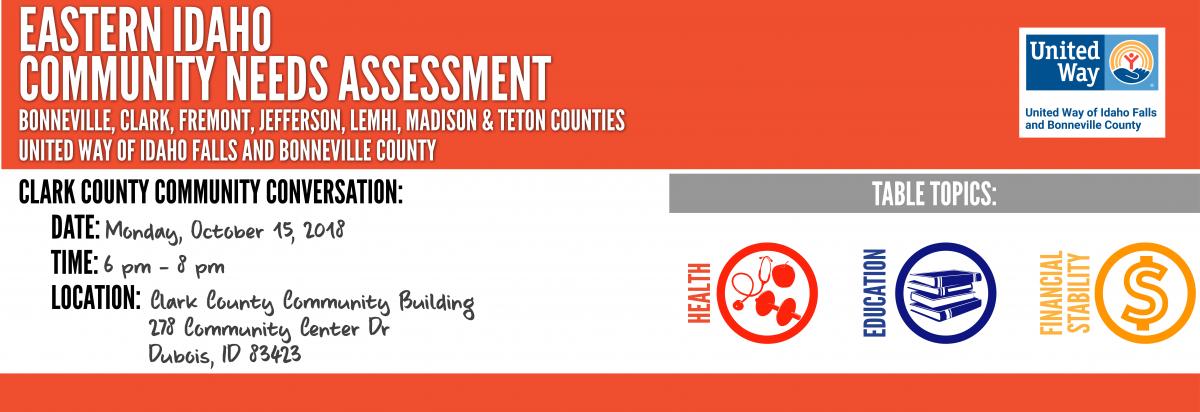 Join United Way of Idaho Falls and Bonneville County, Eastern Idaho Community Action Partnership (EICAP), Eastern Idaho Public Health (EIPH), and VOICE Advocacy for a Community Conversation. The table topics of health, education, and financial stability will focus on the critical needs facing your community.